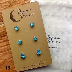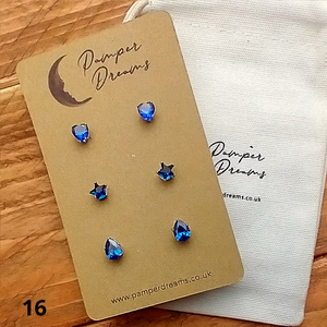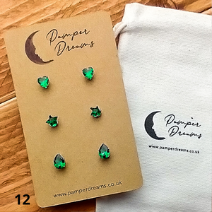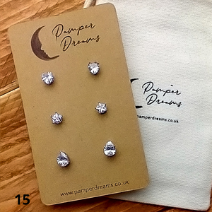 Free Bamboo Gift Pouch Nickel free stud earrings set 3 pairs each set• CZ Heart Studs 6mm• CZ Star Studs 7mm• CZ Teardrop Studs 5mm x 9mm