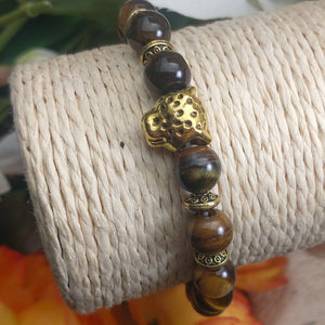 This Hamsa Tiger-eye Lava Stone Bracelet features natural lava stone beads, tiger-eye stone beads and a delicate Hamsa charm. Tiger-eye is a beautiful brown and gold stone that is known...