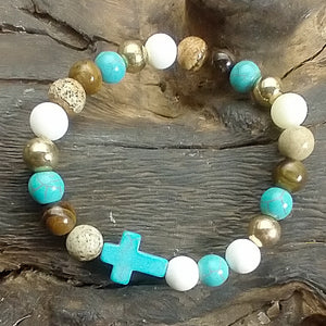 Enhance your inner calm and confidence with the powerful Turquoise Cross Howlite and Tiger Eye chakra bracelet. Soothing and calming Howlite is known for reducing anxiety, tension, and stress, while...